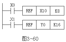 (1) input/output refresh directive REF REF (p) order number is FNC50. FX series PLC Central input/output mode. If you need the latest information and want immediate results you must use the directive. As shown in Figure 3-60, when X0 is switched on, the X10~X17 a total of 8 points will be refreshed when X1 is switched on, Y0~Y7, Y10~Y17, 16–point output will be refreshed.